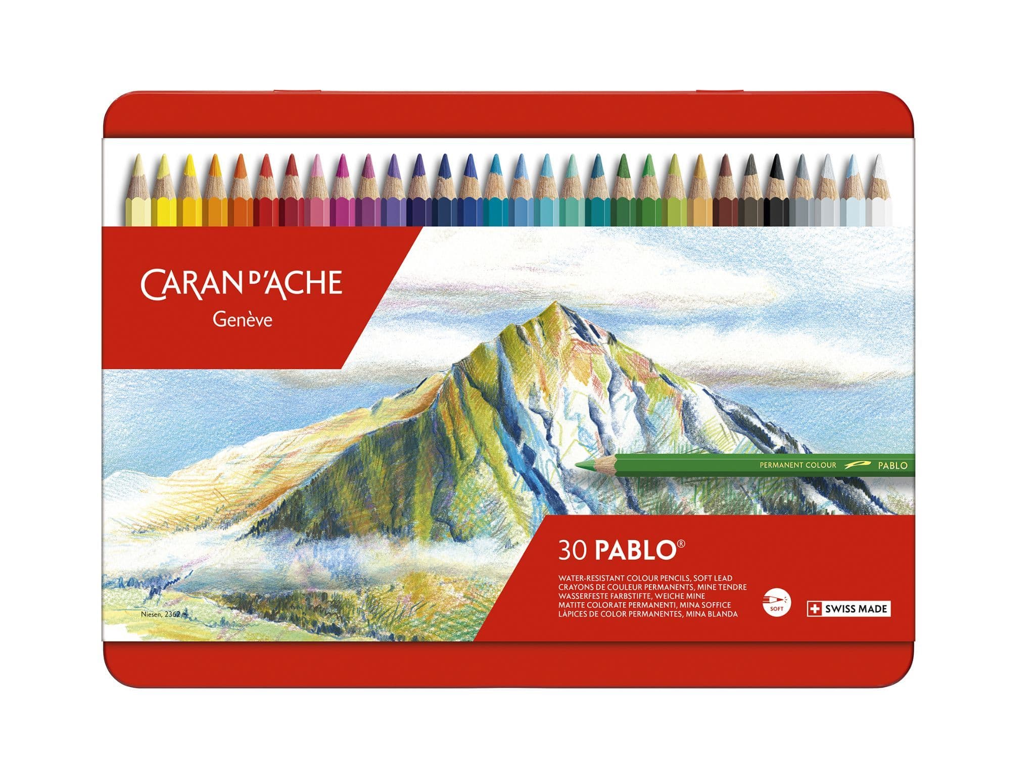 This set contains 30 Pablo Permanent Coloured Pencils encased in a protective metal tin.
